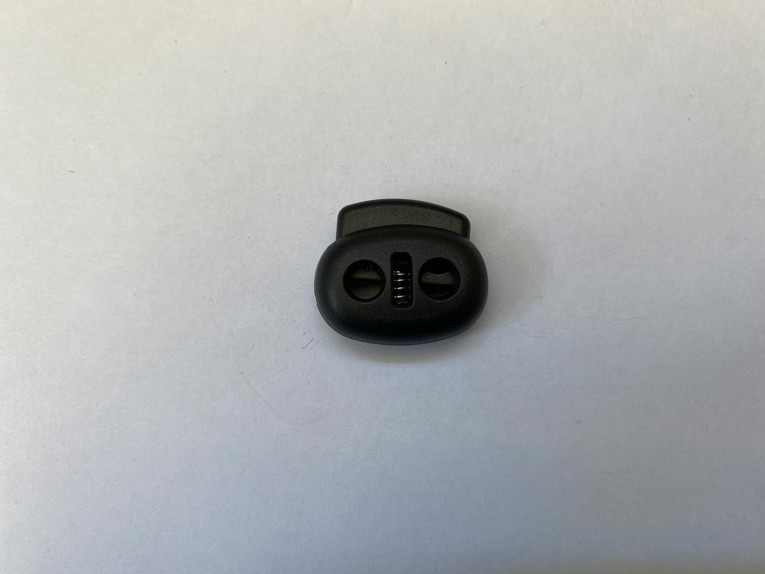 Ball Cord Locks or Toggles are used to tighten draw cord. These are usually found on draw string bags or furniture covers where you would want to tighten the cord to secure something. The spring clamp in the cord lock applies pressure to the draw cord and fixes it in position. This one has a double hole for applications where you would have two cords coming through the lock.